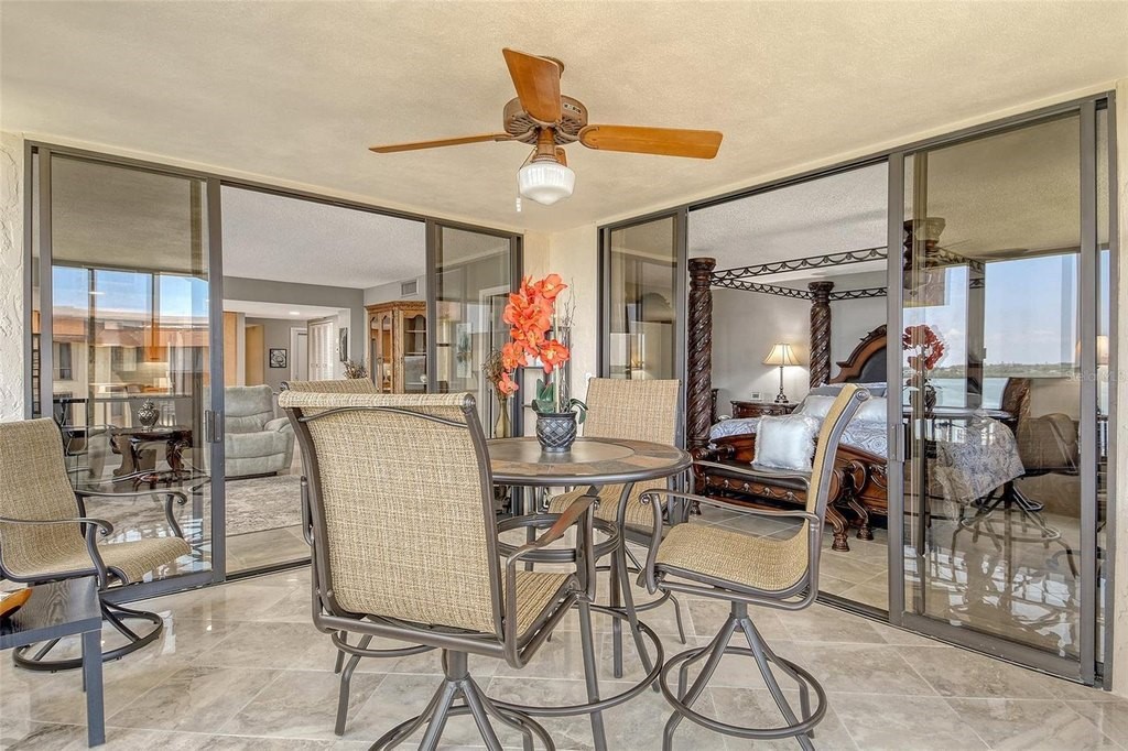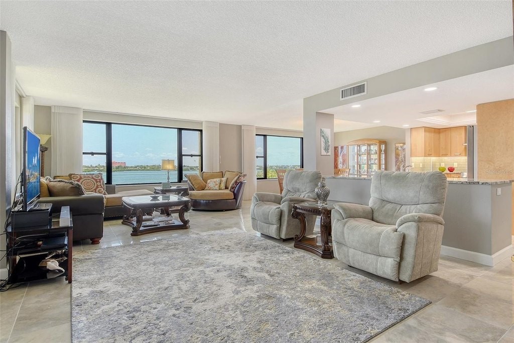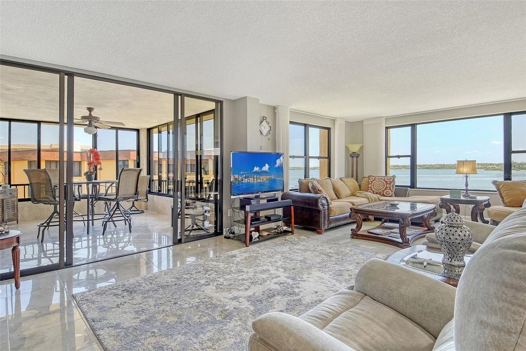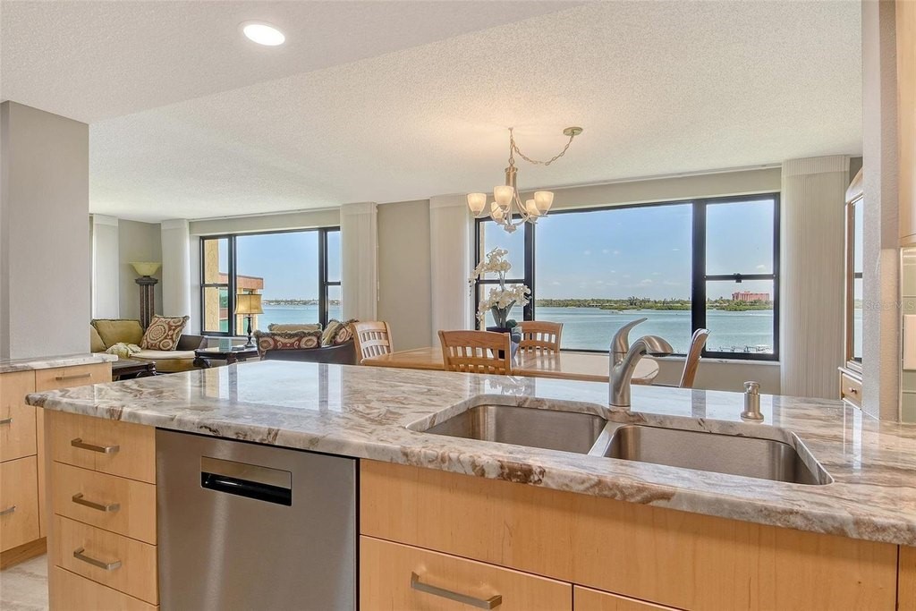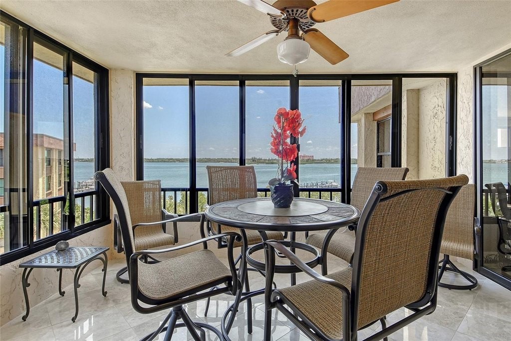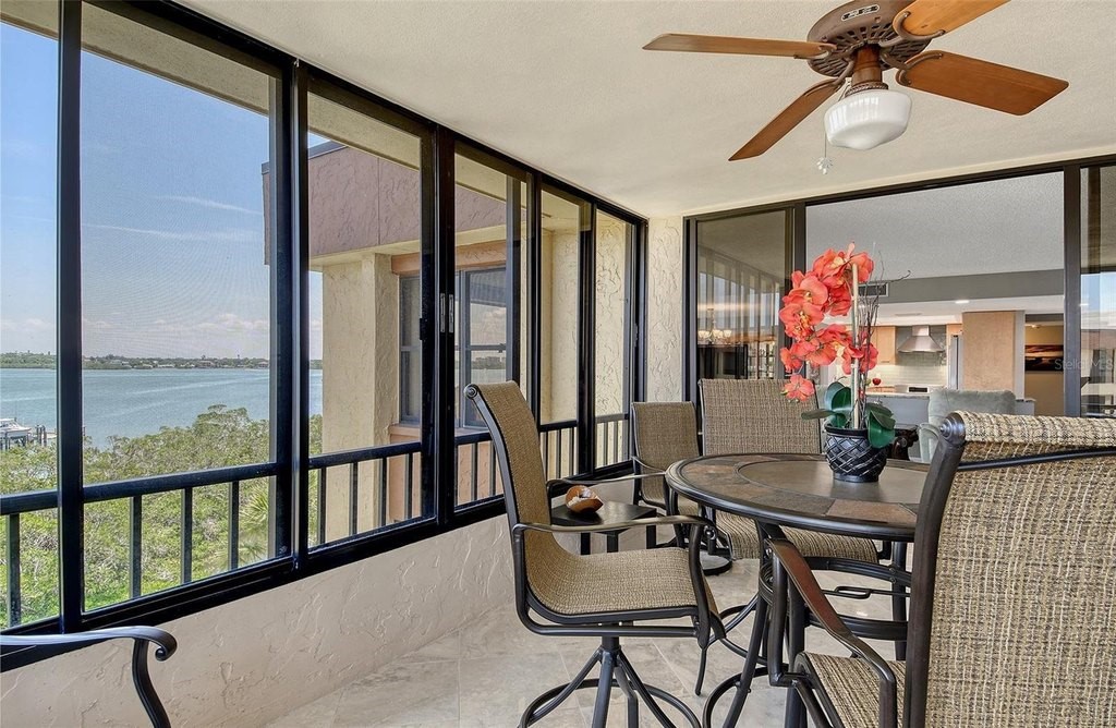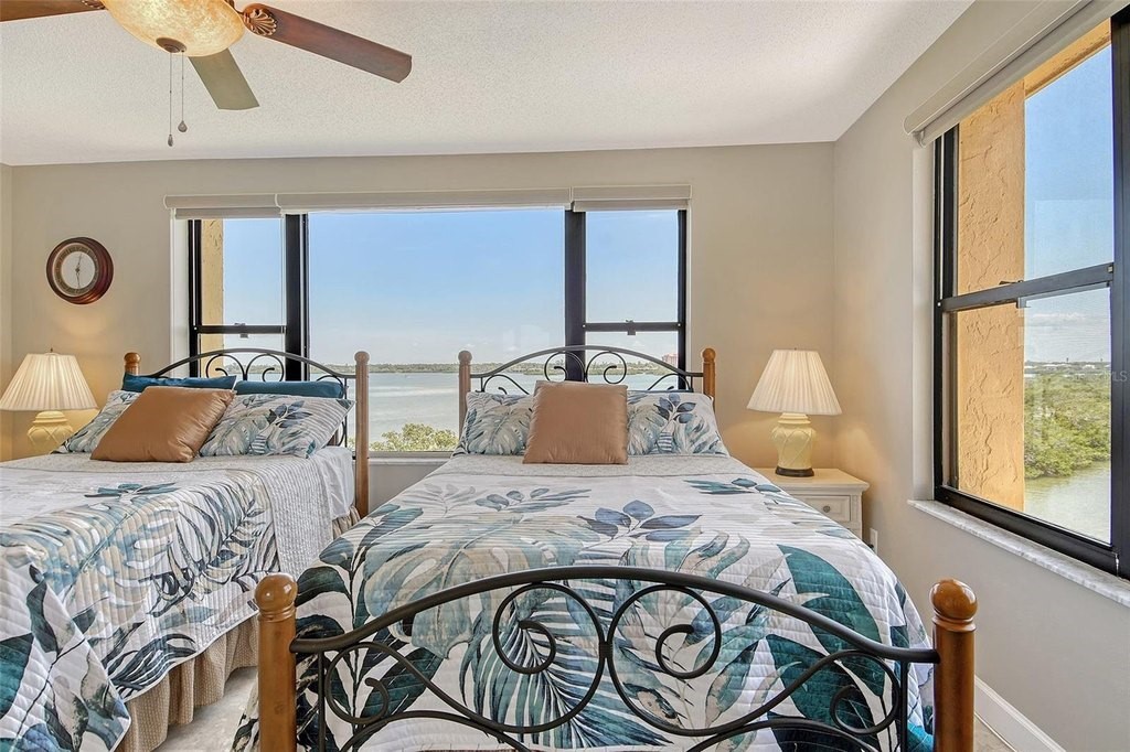 BEACH! BAY! ENJOY PANARAMIC BAY VIEWS FROM THIS UPDATED RESIDENCE. Kitchen with solid surface countertop, stainless appliance. Two bedroom suites with private bath, walk-in closets laundry in residence. Addition room off foyer for den and storage. Turnkey Furnished! Carport! Island Reef is a serene waterfront community, one of the few Gulf to Bay community that offers many desirable amenities including: beach, boat docks (lifts allowed) two lit tennis courts, pickleball, 2 fitness rooms, kayak storage, library, billiards, game room, clubhouse, two heated pools and gas grills, PET FRIENDLY! Tropical gardens add to the appeal of Island Reef and this wonderful community and is close to three of Siesta Key’s popular restaurants. Complimentary trolley to Siesta Village for dining, shopping, ice cream, mini donuts, cute brunch spots, dancing and live music every night of the week!