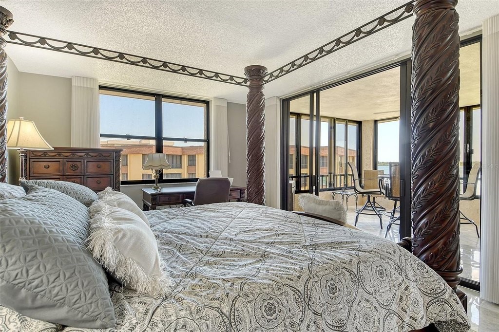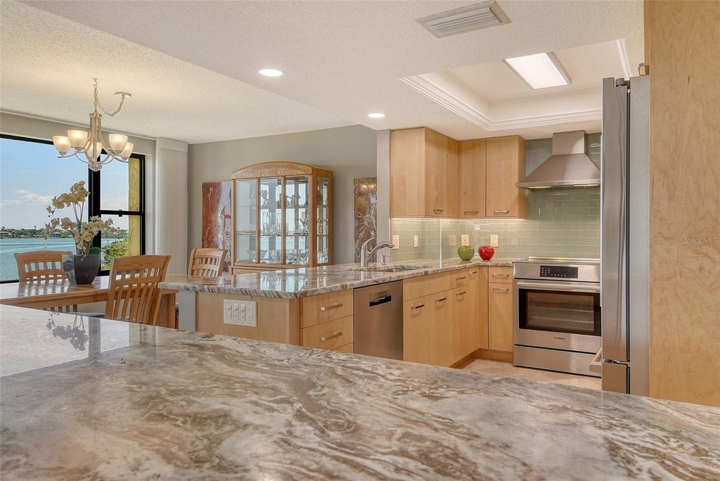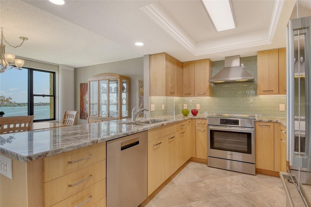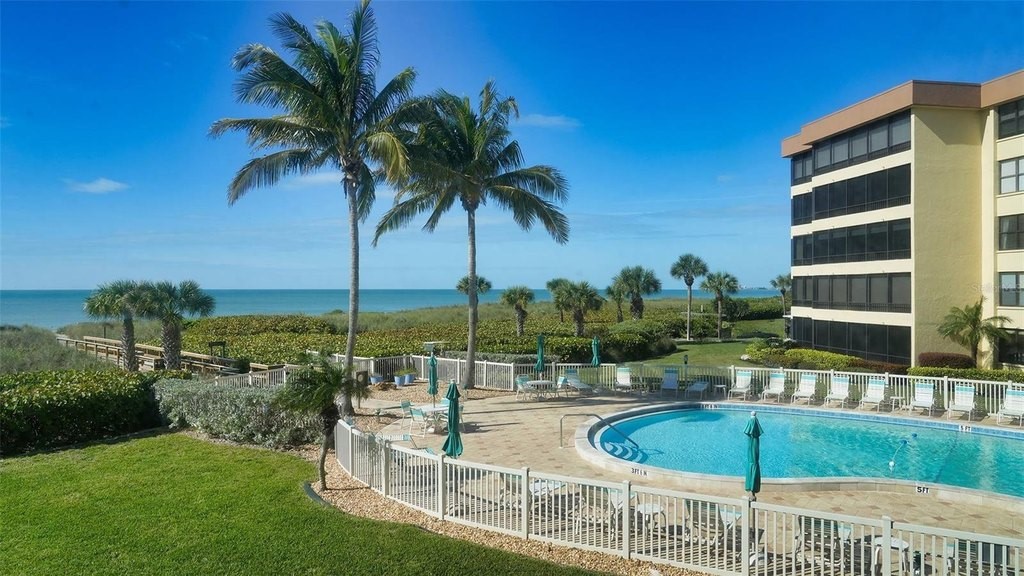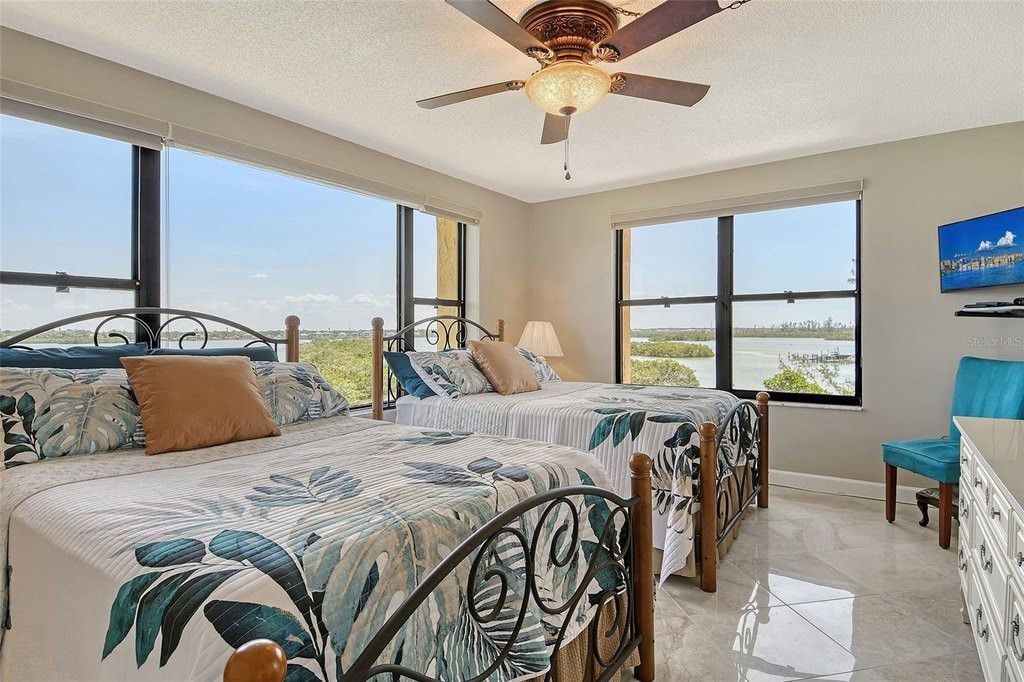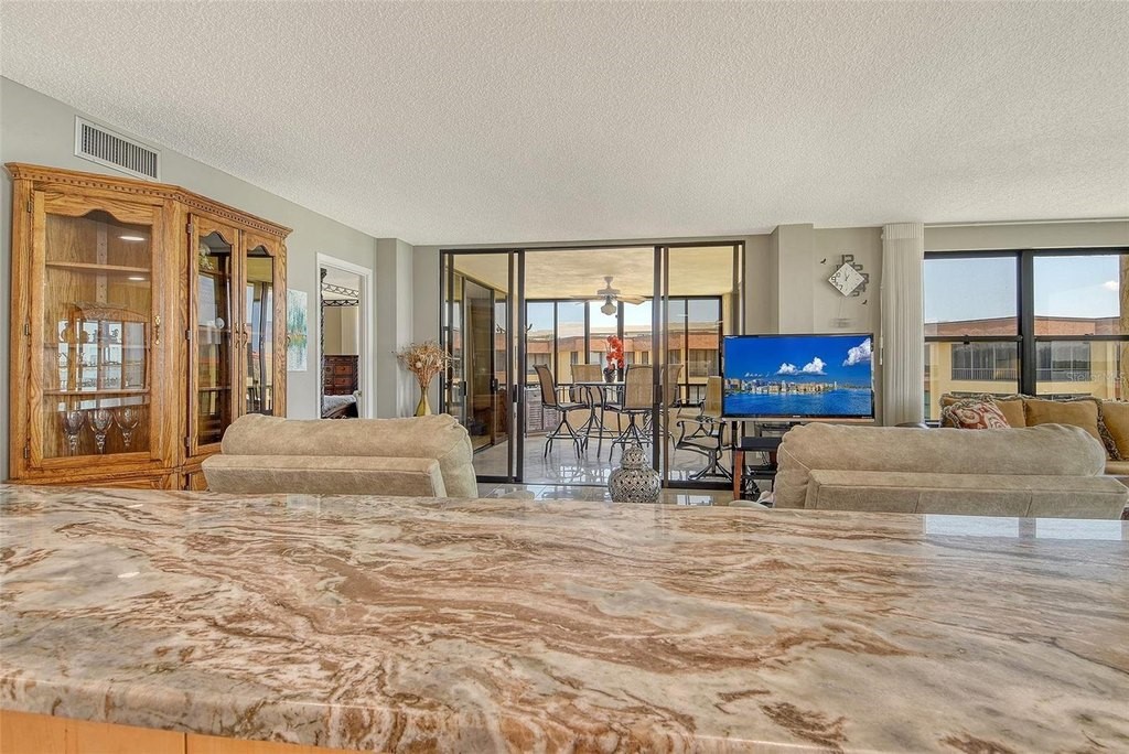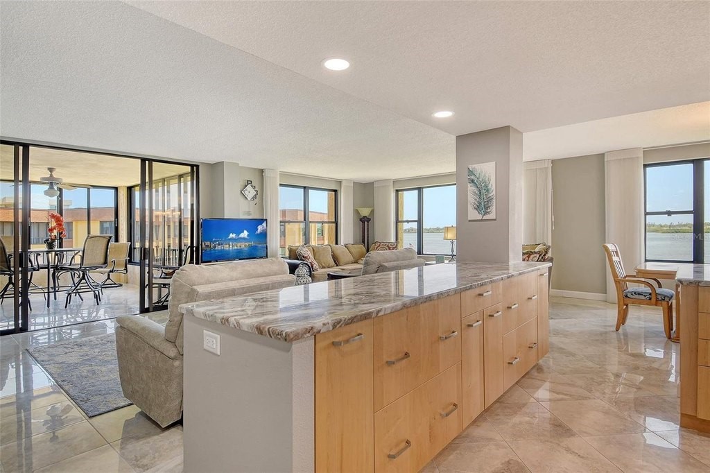 BEACH! BAY! ENJOY PANARAMIC BAY VIEWS FROM THIS UPDATED RESIDENCE. Kitchen with solid surface countertop, stainless appliance. Two bedroom suites with private bath, walk-in closets laundry in residence. Addition room off foyer for den and storage. Turnkey Furnished! Carport! Island Reef is a serene waterfront community, one of the few Gulf to Bay community that offers many desirable amenities including: beach, boat docks (lifts allowed) two lit tennis courts, pickleball, 2 fitness rooms, kayak storage, library, billiards, game room, clubhouse, two heated pools and gas grills, PET FRIENDLY! Tropical gardens add to the appeal of Island Reef and this wonderful community and is close to three of Siesta Key’s popular restaurants. Complimentary trolley to Siesta Village for dining, shopping, ice cream, mini donuts, cute brunch spots, dancing and live music every night of the week!